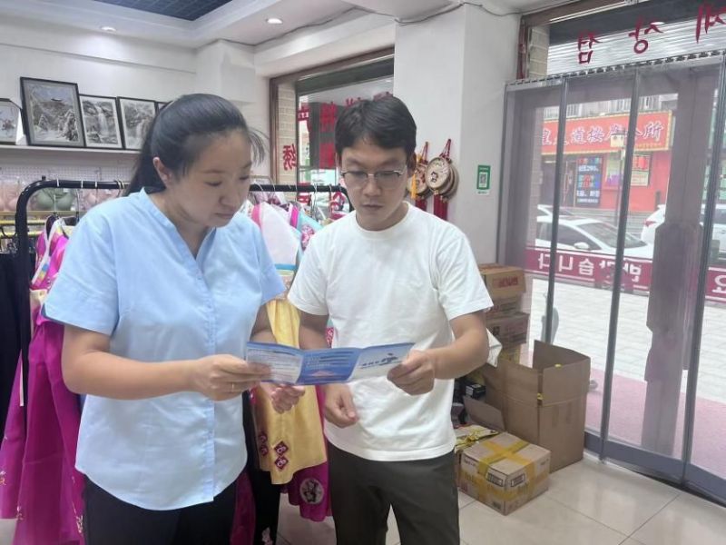 圖:太平人壽工作人員在中朝邊境“高麗街”向商戶(hù)宣傳金融知識(shí)