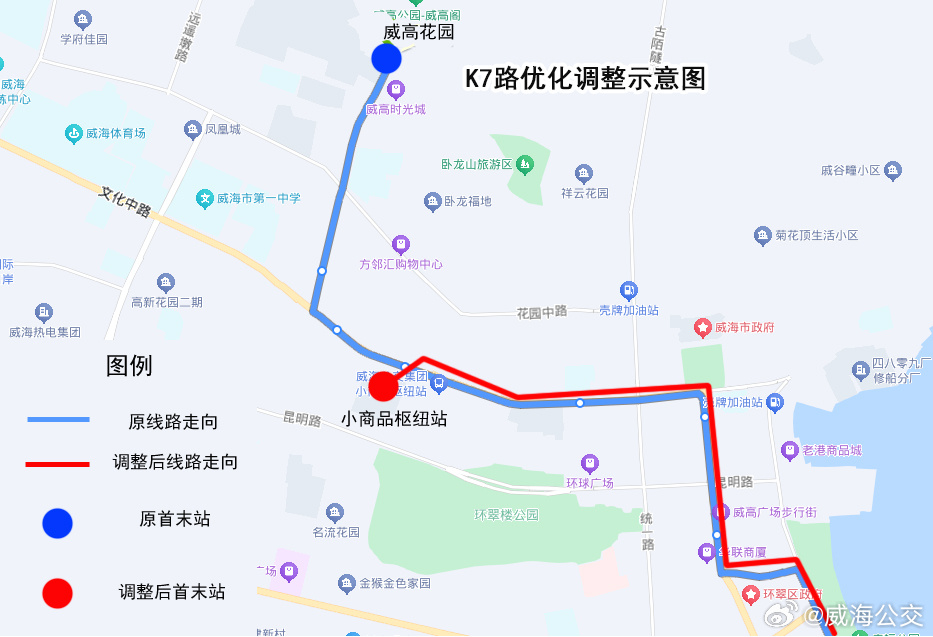 威高花園公交樞紐站停止運營,公交集團根據周邊公交線路運營情況,計劃自10月12日起,優(yōu)化調整25、37、K7路線路走向,具體情況如下:
