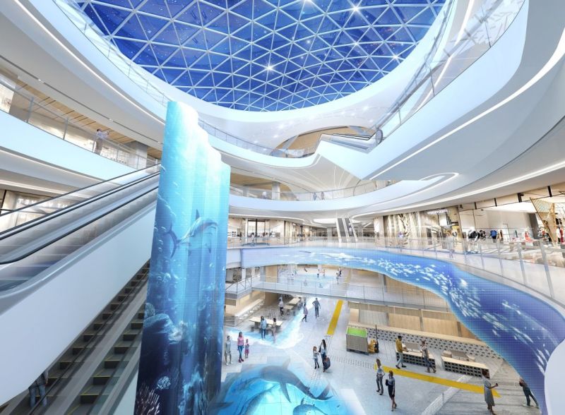 鯤鵬水擊,浩浩湯湯。威海灣城市綜合體以“鯨魚出?!睘殪`感,其中“鯨脊”部分為大跨度拱結(jié)構(gòu)配合預(yù)應(yīng)力空心樓板構(gòu)成,為全國首創(chuàng),其背后蘊(yùn)含的包容、博愛、拼搏等海洋文化,也為該項(xiàng)目增添了學(xué)養(yǎng)深厚的極致韻味。定位城市功能新提升、城市形象重塑造的威海灣城市綜合體,致力于創(chuàng)造一個(gè)多元化的現(xiàn)代城市商業(yè)空間。