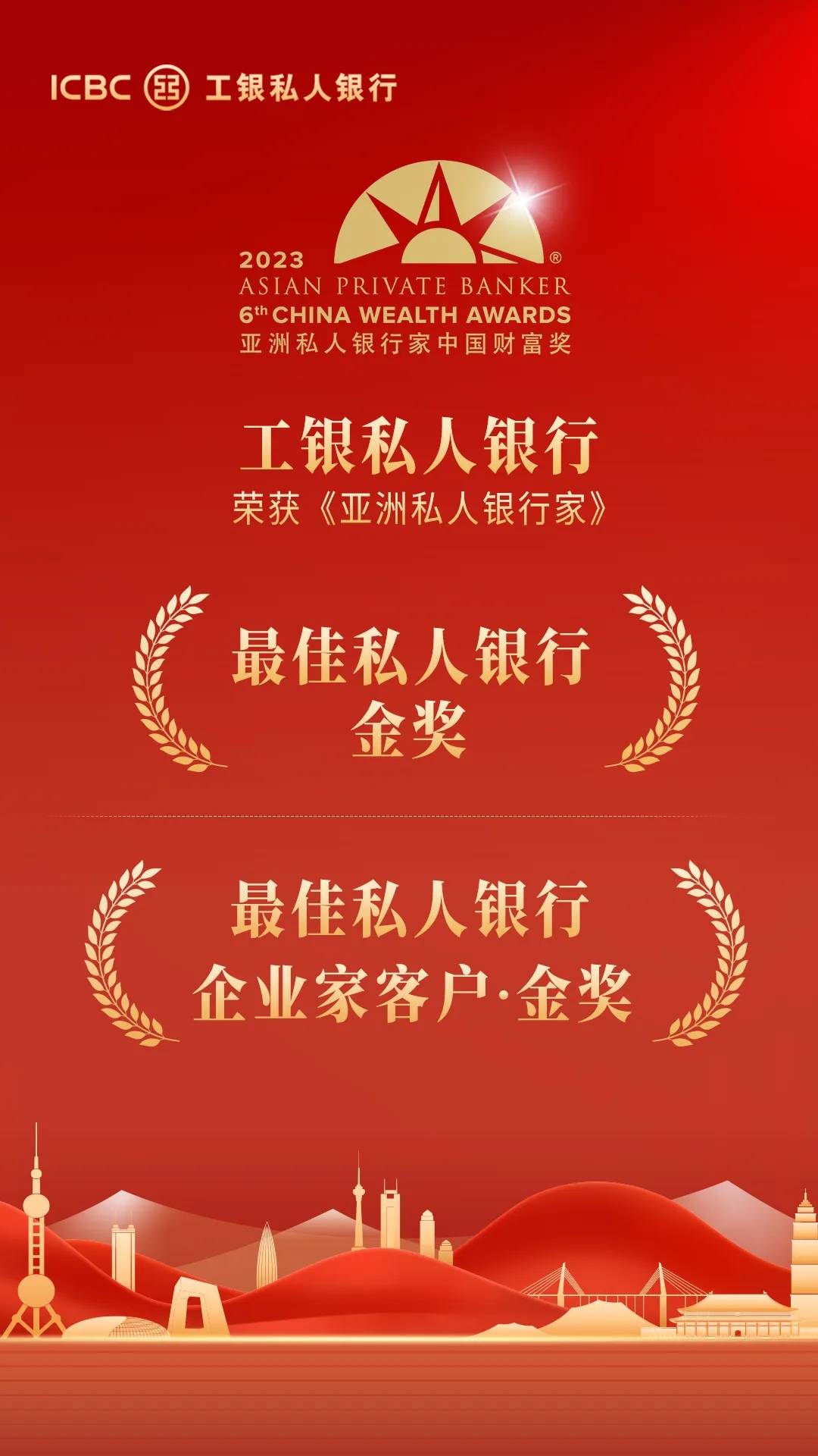 近日,香港《亞洲私人銀行家》雜志公布“2023年中國(guó)財(cái)富獎(jiǎng)”評(píng)選結(jié)果,工銀私人銀行從眾多同業(yè)競(jìng)爭(zhēng)者中脫穎而出,榮膺“最佳私人銀行——國(guó)有銀行組·金獎(jiǎng)”及“最佳私人銀行——企業(yè)家客戶·金獎(jiǎng)”殊榮?!秮喼匏饺算y行家》雜志作為全亞洲最有影響力的私人銀行媒體機(jī)構(gòu)之一, 以其專業(yè)的報(bào)道和深度的數(shù)據(jù)分析深受私人銀行與財(cái)富管理界信賴,此次榮獲《亞洲私人銀行家》雜志兩項(xiàng)大獎(jiǎng),這標(biāo)志著工銀私人銀行在綜合化服務(wù)能力和企業(yè)家客群服務(wù)能力表現(xiàn)得到權(quán)威媒體的充分肯定。