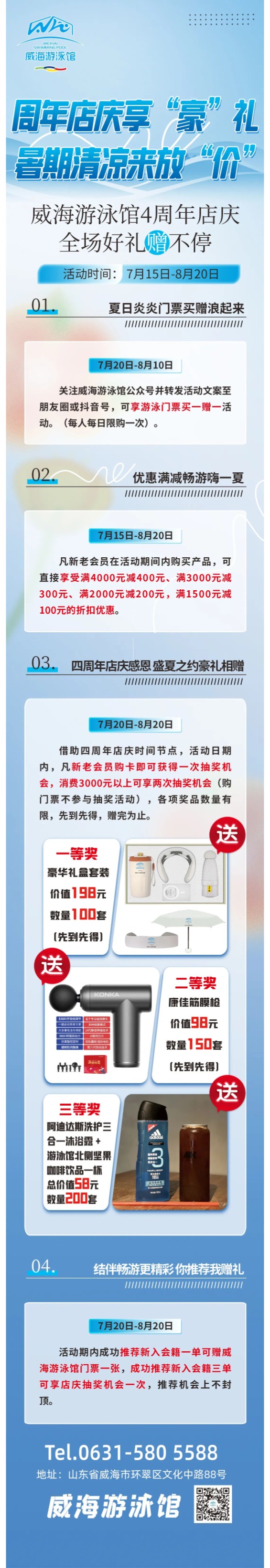 威海游泳館四周年店慶,全場折扣豪禮贈不停!